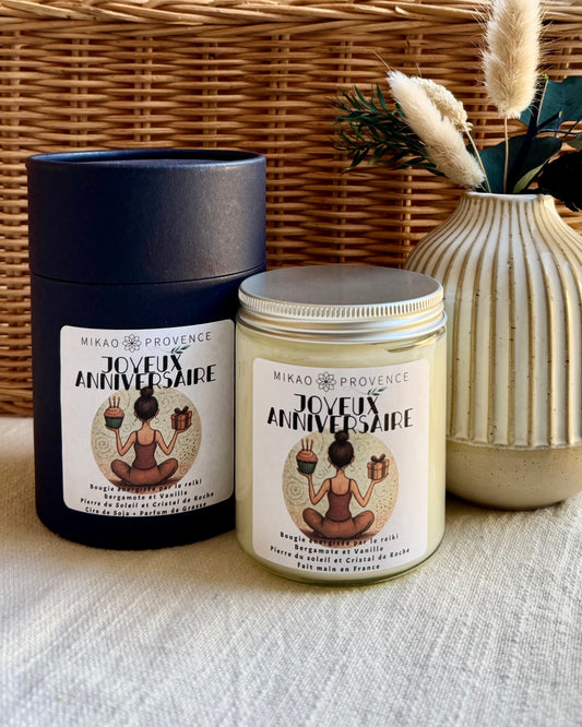 Découvrez la magie de nos bougies d'intention infusées de pierres semi-précieuses. Elles allient la puissance de l'intention avec l'énergie vibratoire des pierres. Découvrez la bougie qui résonne avec vous !