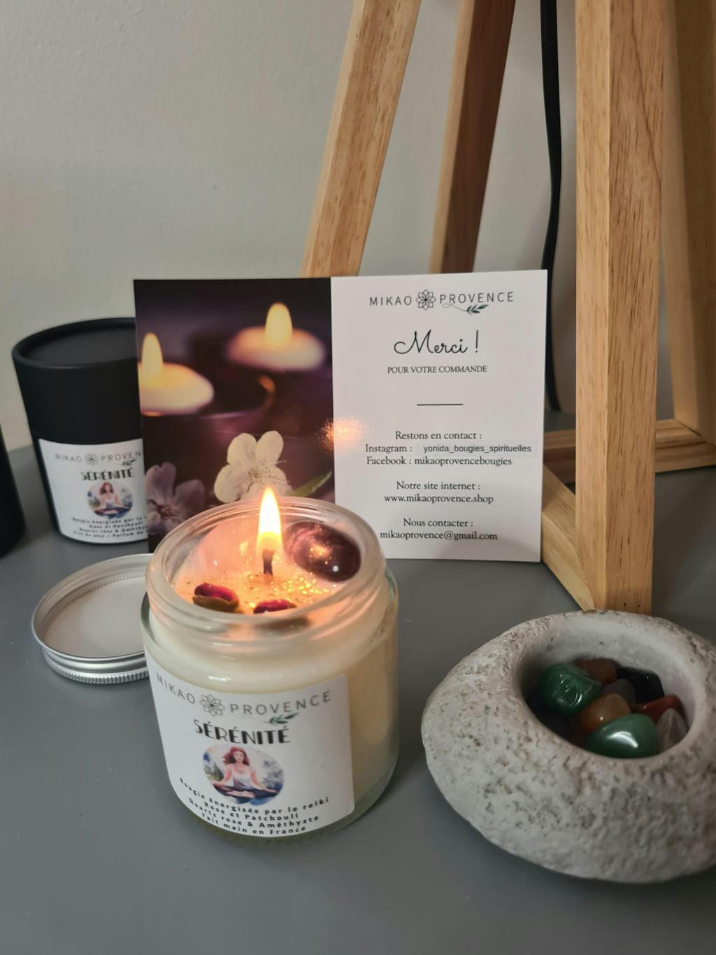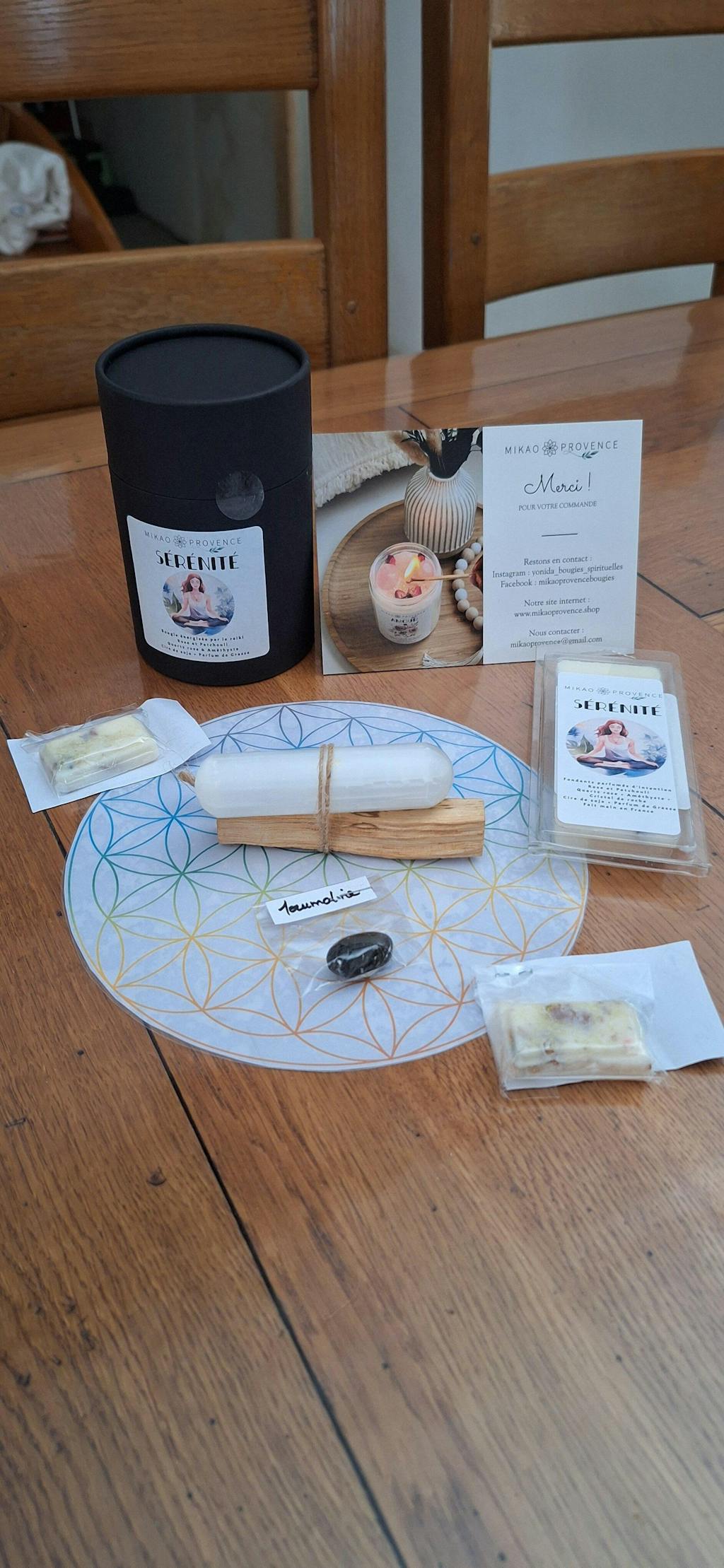 La bougie est accompagnée d'une fiche explicative.